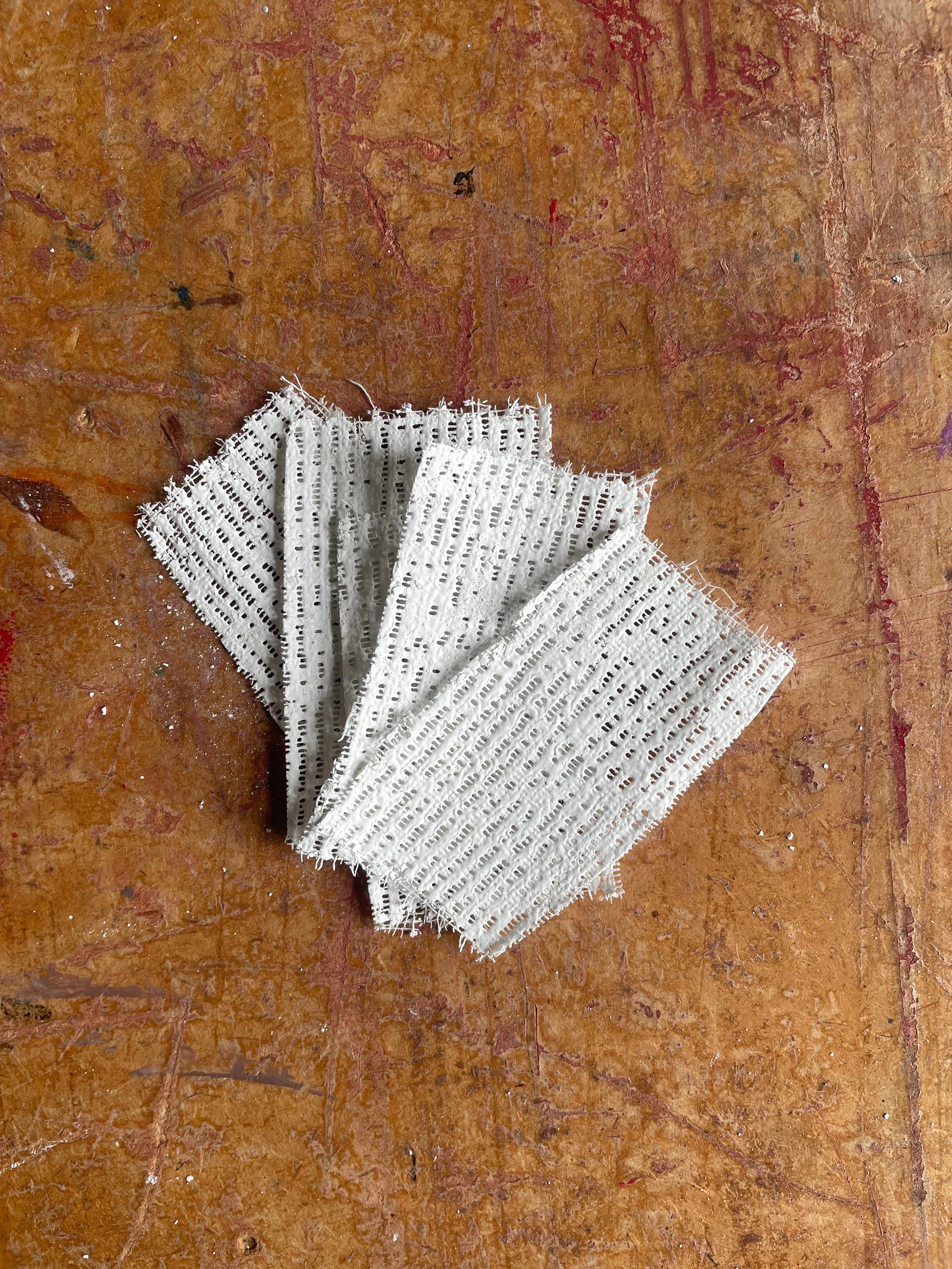 STEG 1 Klipp gipsremsen i biter på ca 4 cm.